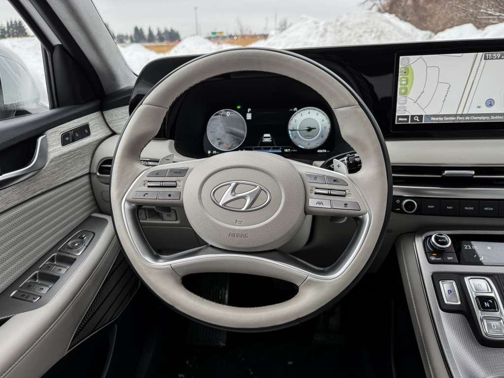 Hyundai Palisade Ultimate Calligraphy 2023, 35 000 km, AWD, V6 3.8L, transmission automatique, fini blanc éclatant. Véhicule d’un seul propriétaire, historique impeccable, jamais accidenté. Découvrez le luxe à son meilleur : sièges et volant chauffants, superbe sellerie en cuir, système de navigation intuitif, toit ouvrant panoramique pour savourer chaque saison, sièges électriques et verrouillage centralisé pour un confort absolu. Inclus : mags chaussés de pneus d’été et jeu de pneus d’hiver pour affronter le climat canadien en toute confiance.