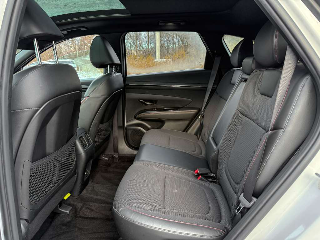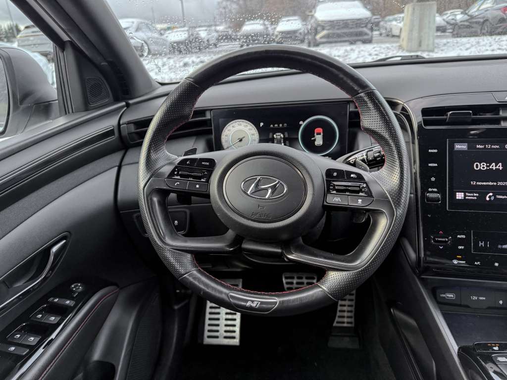 Hyundai Tucson N-LINE 2022, 103 587 km, AWD, moteur 2.5L, transmission automatique. Propriétaire unique et historique sans accident — une tranquillité d’esprit rare! Ce superbe Tucson blanc est une vraie perle : édition N-LINE inspirée, jamais accidenté, avec sièges et volant chauffants pour affronter les hivers canadiens, pneus d’été sur mags pour le style, et un toit ouvrant qui illumine chaque trajet. Profitez aussi de sièges électriques, du verrouillage centralisé et d’un habitacle dessiné pour le confort moderne. Sécurité, élégance et fiabilité Hyundai s’allient ici pour des années de plaisir au volant.