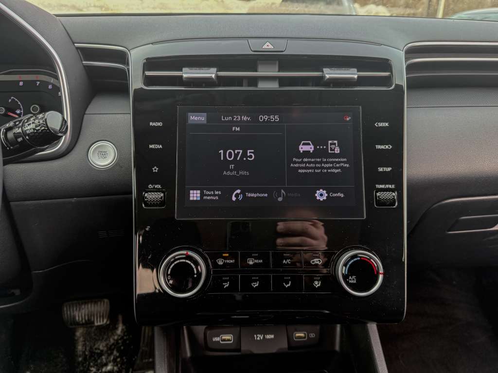 Hyundai Tucson Preferred 2022, 56 789 km, transmission automatique, version à traction intégrale (AWD) et moteur 2,5L I-4 DI DOHC, jamais accidenté : voici un VUS prêt à affronter l’hiver comme l’été. Cette version Preferred séduit par ses sièges et volant chauffants, un incontournable pour les hivers québécois. Pratique et élégant avec sa couleur argent, il offre aussi des mags avec pneus d’été et un ensemble de pneus d’hiver inclus, ainsi que le verrouillage électrique des portes pour plus de confort et de sécurité. Sa réputation de fiabilité et son historique sans accident reflètent un choix rassurant pour votre famille, tout en offrant du style et de l’efficacité. Ce Tucson incarne l’équilibre parfait entre plaisir, tranquillité d’esprit et valeur durable.