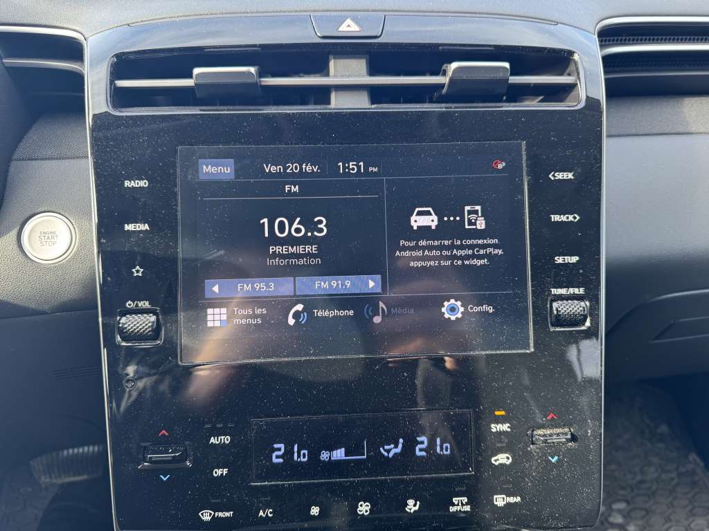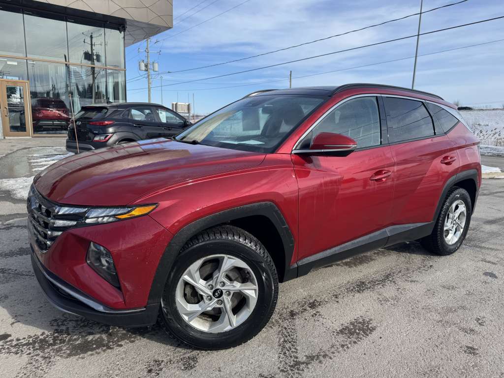 Hyundai Tucson Preferred Trend 2022, 32 270 km, AWD, transmission automatique, moteur 2.5L, finition rouge éclatante : ce VUS compact est un vrai bijou, soigneusement entretenu par son propriétaire d’origine. Il se distingue par son historique impeccable. Profitez du confort supérieur de la sellerie en cuir, des sièges et du volant chauffants, du toit ouvrant panoramique et des mags chaussés de pneus d’été pour une allure dynamique. L’accès sans clé, les sièges électriques et le verrouillage centralisé ajoutent à la commodité de chaque trajet. Ce Tucson allie style, sécurité et polyvalence : le parfait compagnon pour affronter les hivers canadiens tout en impressionnant sur la route.